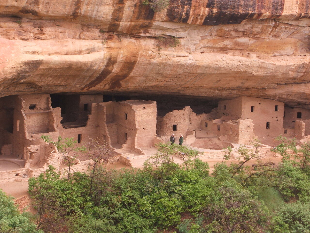 この「クリフ・パレス」(Cliff Palace) と呼ばれる「岩窟住居」による集落が、メサベルデ国立公園園内で最大規模の遺跡です。部屋は217室、壁は高いところで4階建ての高さがあります。
