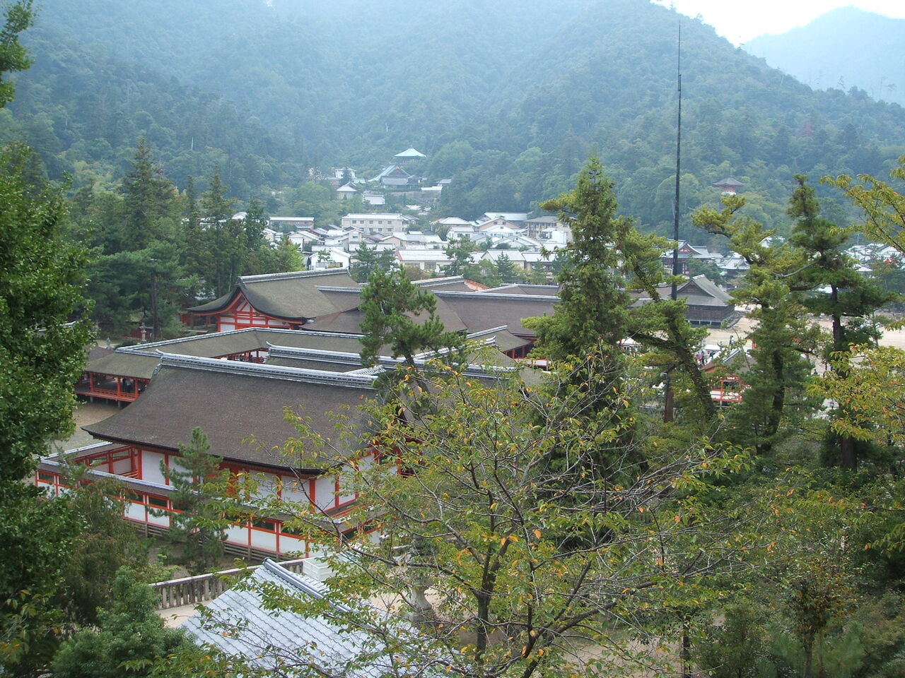 厳島神社は、瀬戸内海の広島湾に浮かぶ厳島 (宮島) の北東部に位置しており、標高535mの弥山を擁する島全体がかつては御神体として崇められてきました。島全体が御神体であるため、遠く離れた場所から拝むことが信仰の始まりでしたが、次第に水際に社殿が形成されていきました。