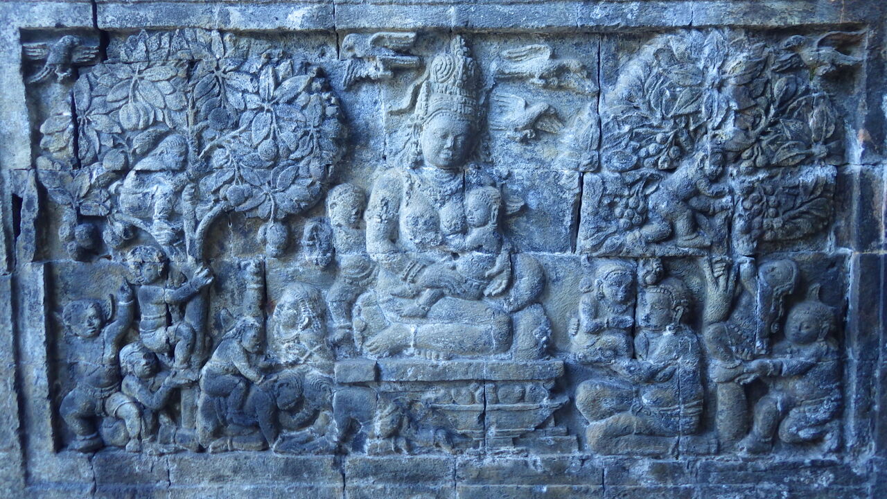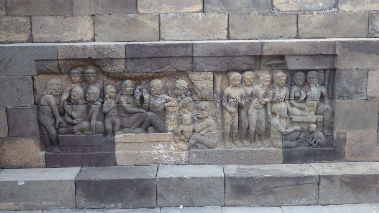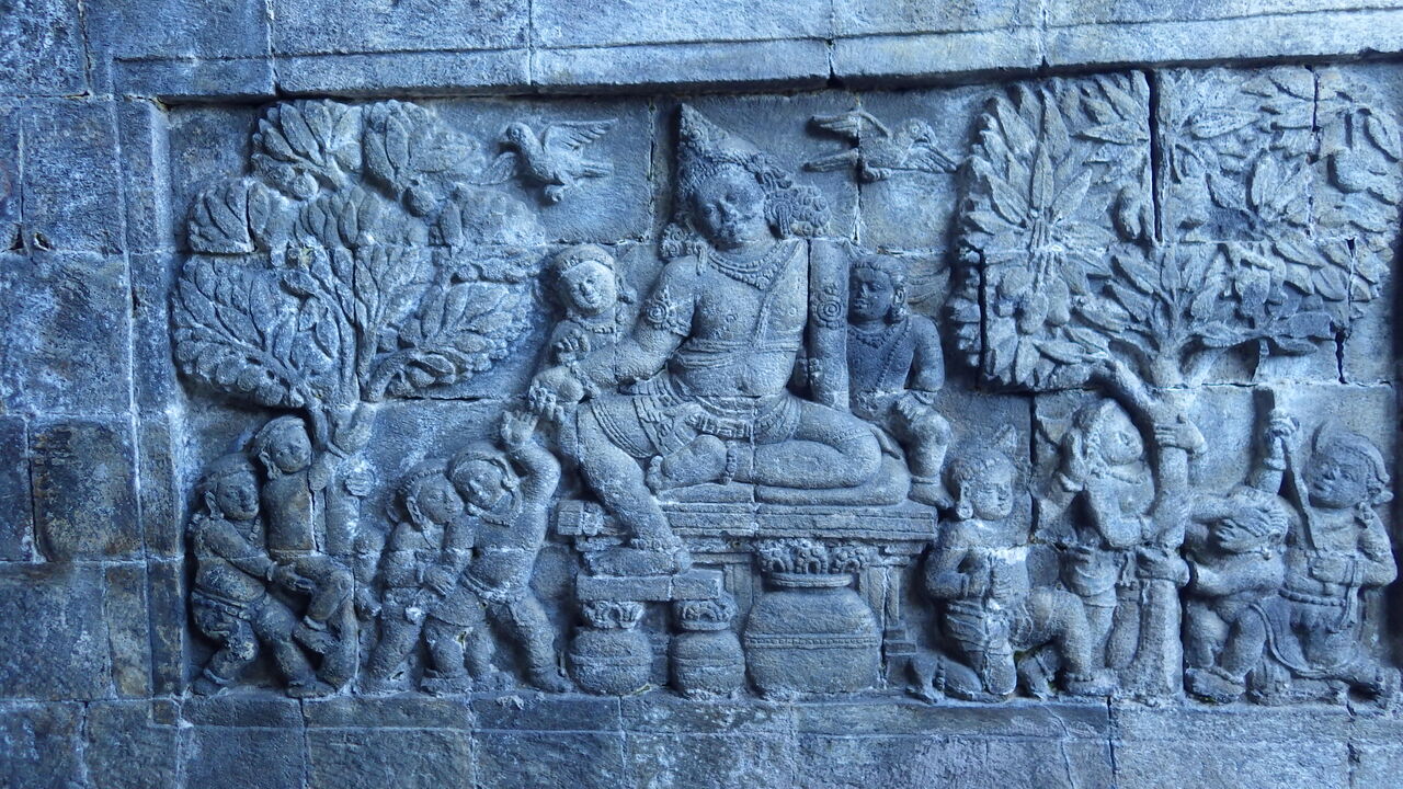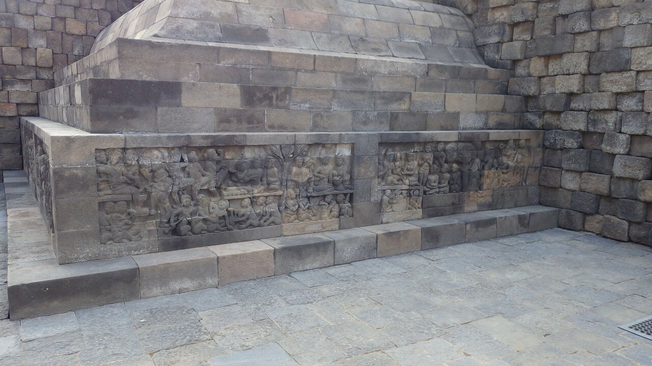 なお、ボロブドゥール寺院の構造は、大乗仏教の宇宙観である「三界」を表していて、基壇は「欲界」、方壇は「色界」、円壇は「無色界」を示すとされているそうです。また、回廊の壁面には、仏教にまつわる絵物語が1,300面のレリーフで表現されていて、時計回りに展開するストーリーは、仏陀の一生や仏教の教えを伝えています。