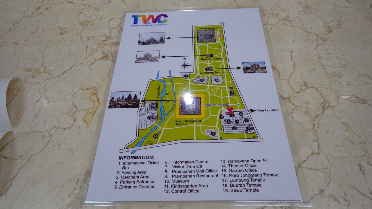 また、ボロブドゥール史跡公園内のマップですが、プランバナン同様、ここでも日本語版は売り切れでした (下記の写真) が、プランバナンとは異なり英語版はありました。